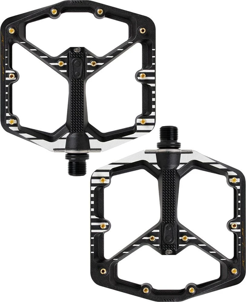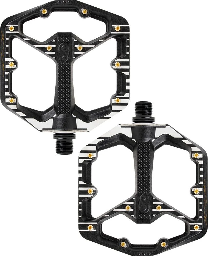 Los Stamp 7 de Crankbrothers de la Edición Fabio Wibmer son unos pedales de plataforma cóncava de nivel profesional. Con 10 clavijas ajustables por lado, nunca perderás el contacto con tus pedales, por muy extremo que sea el camino.