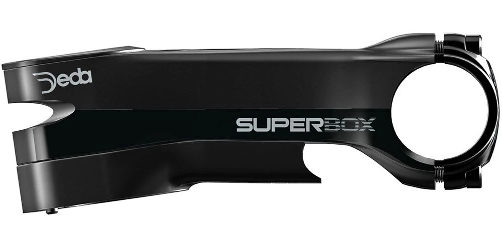 La potencia Superbox A-Head es la evolución de Deda de la famosa potencia Superzero y permite un guiado de cables totalmente integrado cuando se combina con manillares Deda compatibles con el sistema DCR.