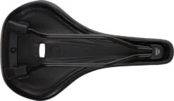 La rampa trasera soporta mejor al ciclista en situaciones de subida pronunciada cuando está sentado. El contorno del sillín facilita el cambio a la posición de descenso cuando se conduce detrás del sillín. La forma en V también ofrece libertad de movimiento a través de los amplios costados hasta la nariz acolchada – importante para las subidas particularmente empinadas.