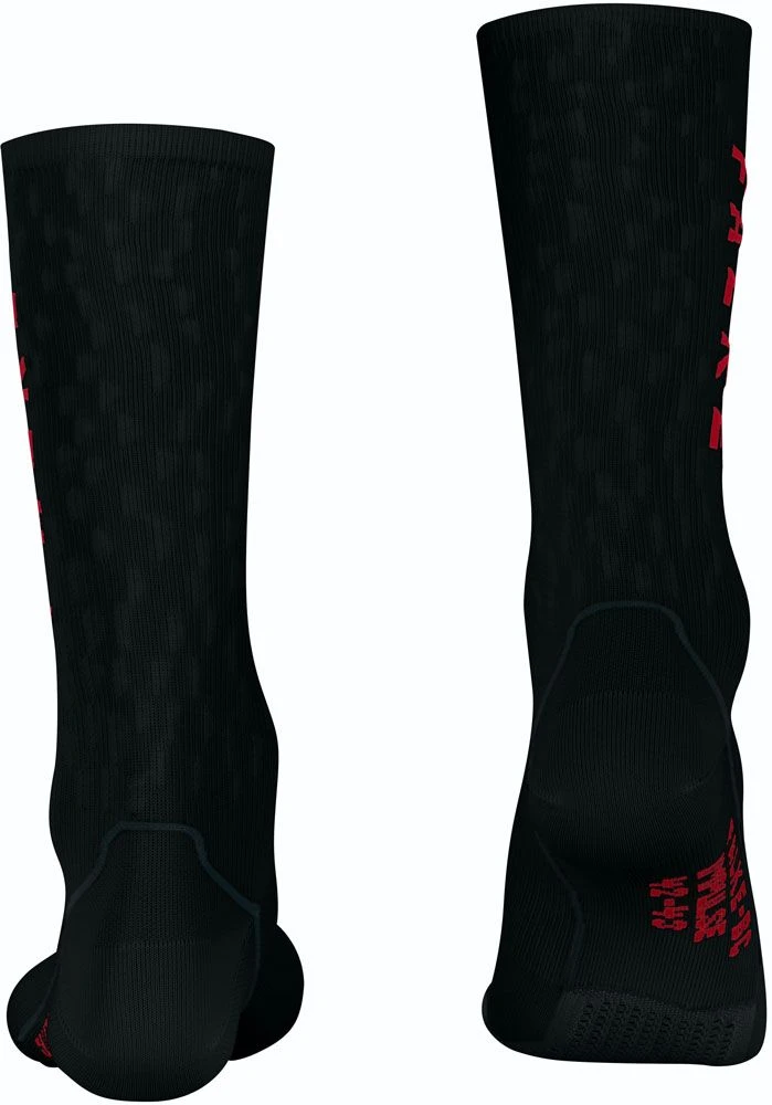 In addition, the ultra-light padding combined with the stimulation of the receptors in the ball of the foot and the toes offers improved balance and dynamics, as well as immediate power transmission in all bike shoes. The optimum fit completes the functionality of these sports socks perfectly. The design of the “BC Impulse Peloton” with coloured strokes in the shaft is reminiscent of a bike peloton in a bird’s eye view, making it perfect for riding road bikes.
