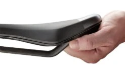 El Terra Aidon X1 de Fizik es un sillín de MTB relativamente corto especialmente diseñado para las E-MTB de suspensión completa. La forma corta sitúa al piloto en una posición más estable y contribuye así a un mayor control. Gracias al perfil ligeramente ondulado con elevación en la zona trasera, el ciclista de E-MTB experimenta un apoyo adicional, especialmente en las subidas técnicas.
