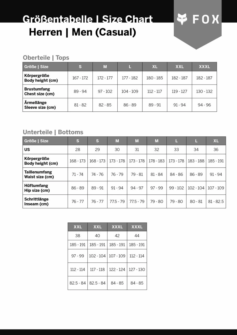 | Chest measurement in cm | 84 – 91 | 94 – 102 | 102 – 109 | 109 – 117 | 117 – 124 |