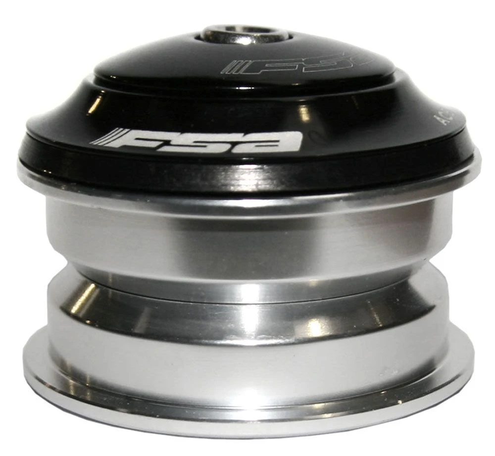 El juego de dirección semi-integrado Orbit Z de FSA para tubo de dirección de 1 1/8″ con cazoletas de aluminio forjado mecanizado CNC y tapa de aluminio.