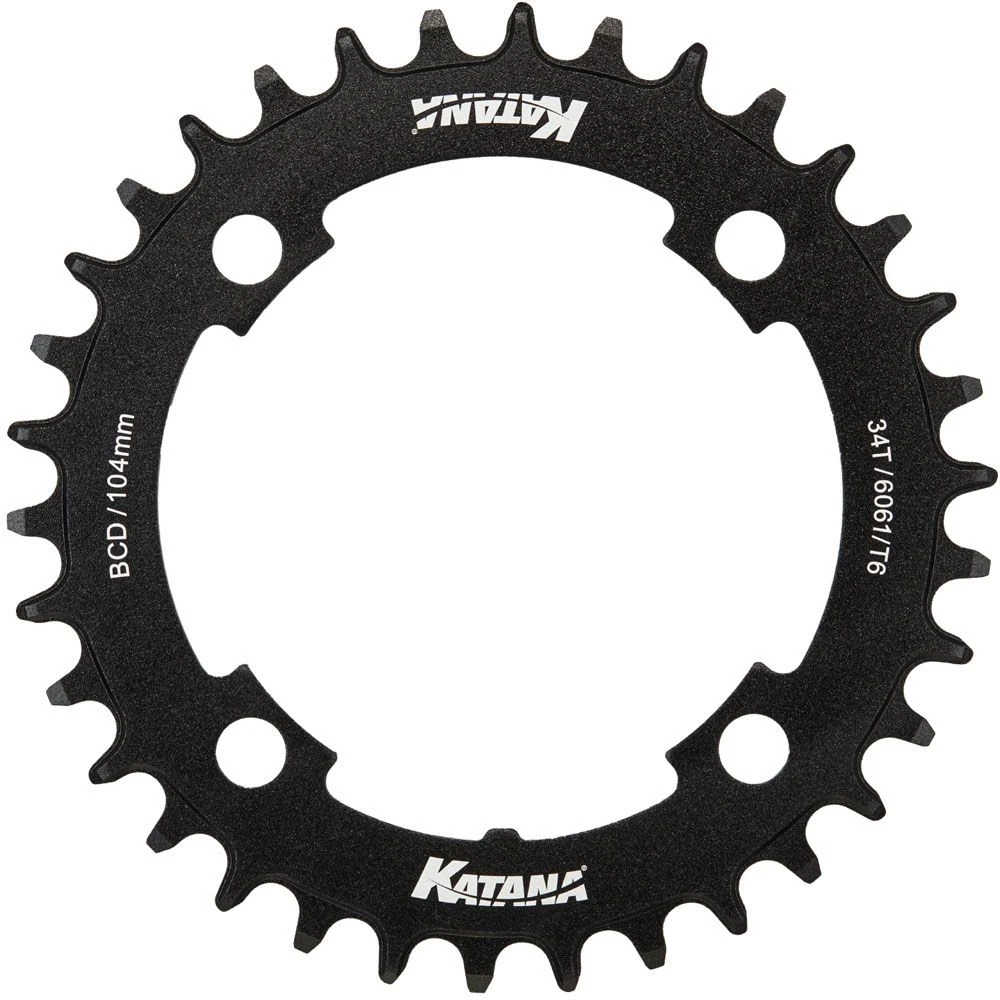 La transmisión de 1 velocidad exige mucho al plato, porque la cadena pasa todo el tiempo en él. El plato Narrow Wide de Katana combina una gran capacidad de carga con un peso reducido. Los diferentes tamaños de plato le permiten dar a su bicicleta la relación de transmisión perfecta.