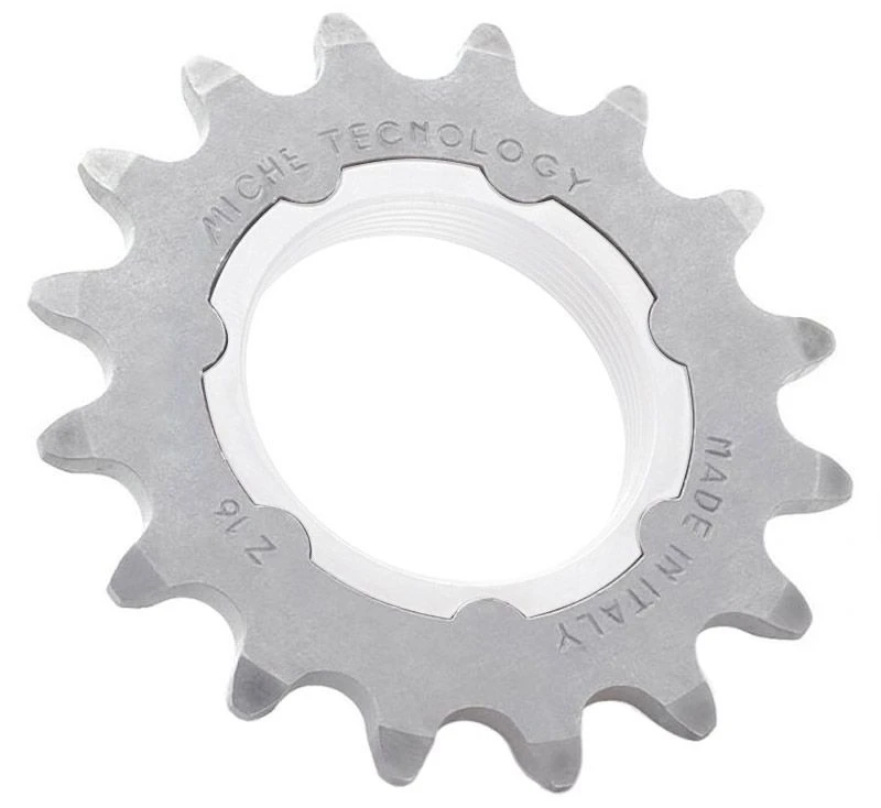 El piñón de pista 1/2×1/8 sin portapiñones fue desarrollado por Miche especialmente para las bicicletas de carreras de pista donde sustituye al casete.