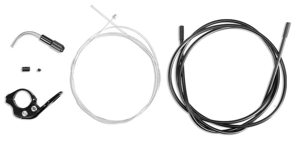 La tija de sillín RFR Dropper Post PRO «Inside» de ajuste continuo es especialmente adecuada para cuadros con enrutamiento interno. Todas las monturas CUBE Stealth Ready son compatibles y el rango de ajuste se puede manejar a través del mando a distancia de la cabina. El mando a distancia mantiene las dos manos en el manillar y también ofrece la máxima seguridad de conducción. El peso máximo recomendado es de 110 kg.
