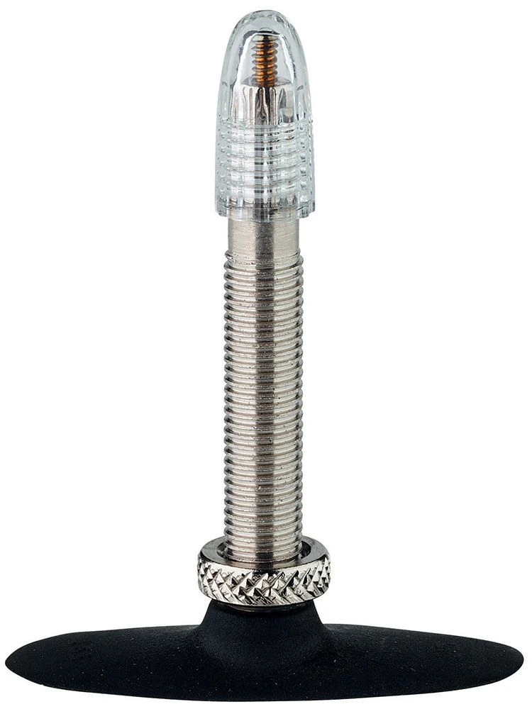 Hay tres tipos que se han convertido en estándares del mercado y es difícil hacer una recomendación particular. Lo más importante es que la válvula se adapte al orificio de la llanta y que se disponga de una bomba adecuada. En contra de la creencia popular, las grandes diferencias de retención de aire son ya cosa del pasado. En cualquier caso, todas las válvulas Schwalbe ofrecen un excelente rendimiento y están adaptadas al uso de alta presión. La clásica válvula de bicicleta o válvula Dunlop sigue siendo la más común en todo el mundo. La mayoría de los ciclistas están familiarizados con ella. El núcleo de la válvula se puede sustituir fácilmente y el aire se puede liberar muy rápidamente. El montaje de una cámara con válvula Dunlop es más complicado, ya que hay que retirar el núcleo de la válvula y la contratuerca para poder introducir la válvula en el orificio. El inflado sólo es posible una vez que el núcleo y la tuerca vuelven a estar en su sitio. Con las válvulas Dunlop tradicionales, es imposible comprobar la presión de inflado. Sin embargo, la válvula Dunlop especial de Schwalbe permite un flujo de aire de retorno, por lo que ahora es posible comprobar la presión de inflado con un manómetro Airmax. Antiguamente era difícil inflar una cámara con una válvula Dunlop, pero con los modernos núcleos de válvulas actuales, esto ya no es así. La válvula Sclaverand es más estrecha que otras válvulas (6 en lugar de 8 mm). Necesita un orificio de llanta más pequeño y, por lo tanto, es especialmente adecuada para las llantas estrechas de las bicicletas de carreras. También es aproximadamente 4-5 g más ligera que una válvula de coche o una válvula Dunlop. Se puede bloquear manualmente con la tuerca moleteada. Antes de inflar, hay que aflojar la tuerca moleteada. Los usuarios primerizos suelen tener algunos problemas. Además, el fino pasador superior puede doblarse fácilmente al colocar y retirar el conector de la bomba. Precaución: Tenga en cuenta que el uso de tubos de válvula Sclaverand en llantas con agujeros de válvula más grandes a menudo conduce a un desgarro de la válvula cuando los bordes metálicos afilados alrededor del agujero de la válvula cortan el vástago de la válvula del tubo. La válvula Auto/Car se puede inflar muy fácilmente en una estación de servicio y es agradablemente poco problemática. Las bombas de bicicleta más antiguas y sencillas no son compatibles con las válvulas de coche.
