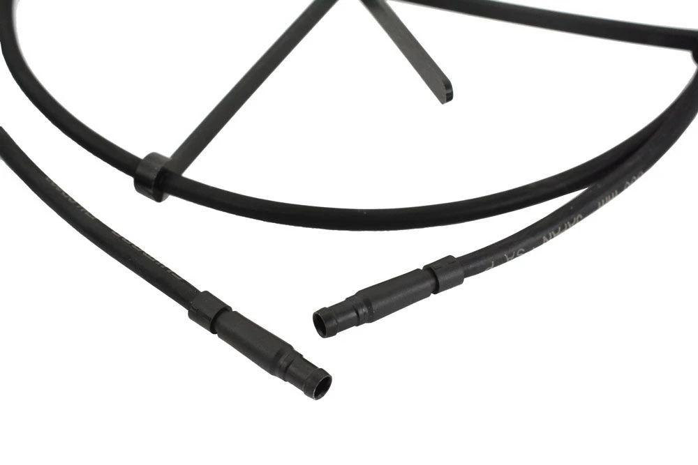 El cable E-TUBE SD300-I de Shimano para el enrutamiento interno de los cables está disponible en longitudes de 150 a 1600 mm. Transmite señales interactivas y suministra energía a los accionamientos E-TUBE DI2. Dispone de un conector impermeable y compacto, y puede pasar fácilmente por el interior del manillar y el cuadro gracias a la conexión «Plug & Gap».