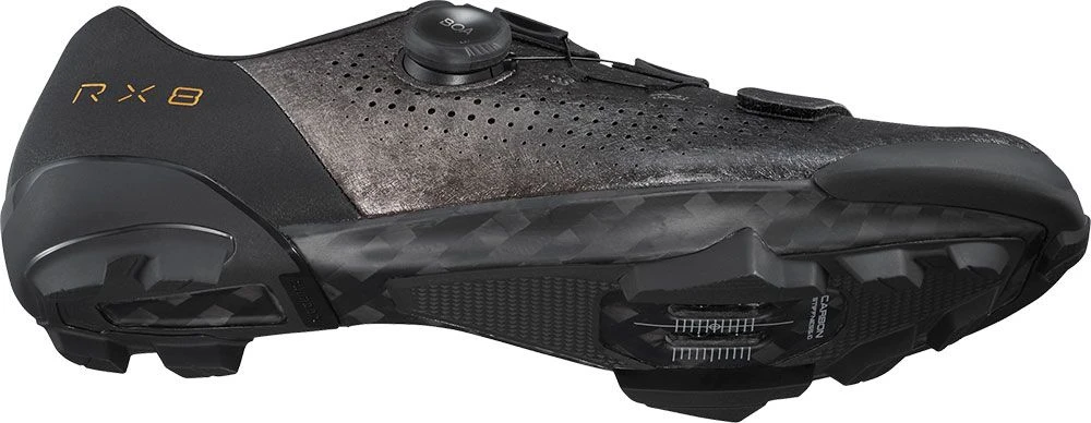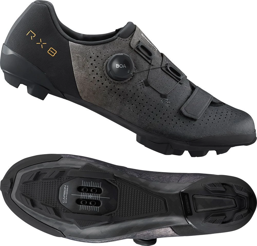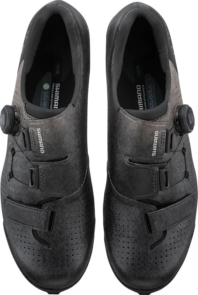 La SH-RX801 está estratégicamente diseñada para su uso con pedales SPD y ofrece la máxima eficiencia y estabilidad en el pedaleo. Una parte superior envolvente con suave piel sintética proporciona poder de sujeción y comodidad al mismo tiempo. Para un ajuste fino rápido y preciso, está equipado con cierres giratorios BOA® Li2 de perfil bajo con empuñadura de goma.
