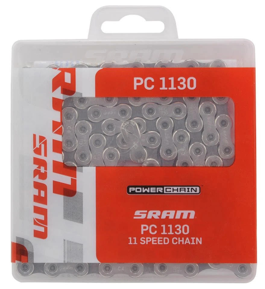 The new SRAM PC-1130 chain has even more rounded outer plates for improved shifting and quieter running. Additional advancements include a new inner link surface and enhanced with chrome pins for a longer chain life. The HollowPin ™ construction SRAM 11-speed chain provides smooth, precise shifting and weight savings without sacrificing strength.