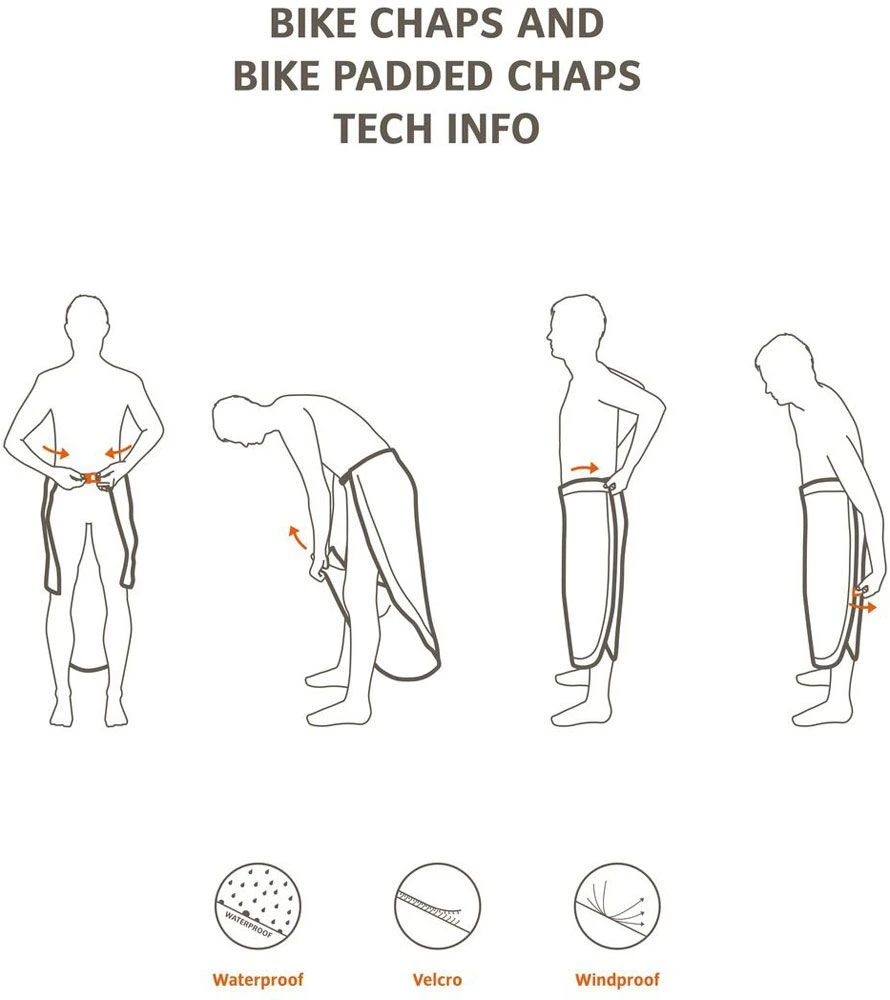 A practical buckle system makes it possible to put them on in three simple steps. Absolutely waterproof at the seat, the robust 3-layer material protects you from spray and dirt from the rear wheel. The lightweight, highly breathable 2-layer material at the front of the Chaps protect you from headwind and rain. Reflective elements at the thighs ensure higher visibility, even in low light conditions.