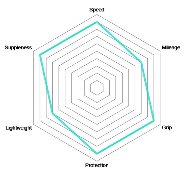 Empezando por el cuerpo reforzado con Corespun-K de 320 TPI, flexible pero duradero, y una mezcla patentada de 4 compuestos de grafeno diferentes, el nuevo Corsa consigue el santo grial del rendimiento: velocidad, suavidad, durabilidad y fiabilidad. Tanto si quieres ganar un Gran Tour como un evento local, la familia Corsa ofrece un rendimiento superior.