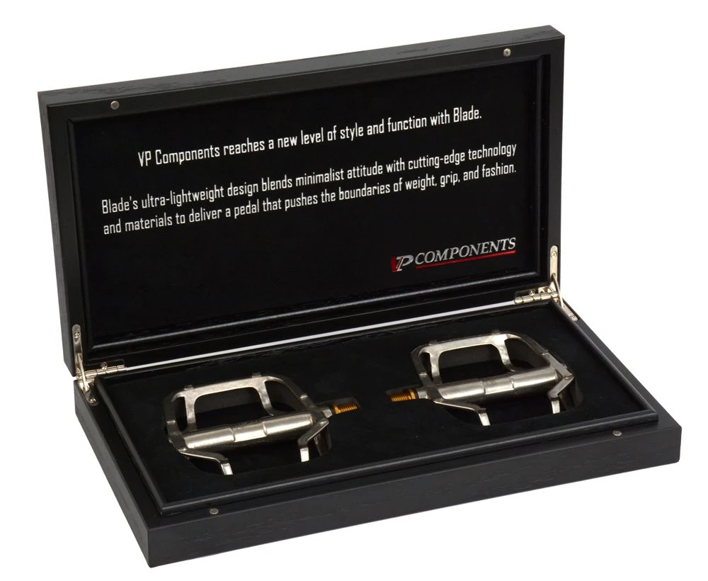Diseño minimalista, tecnología punta y material de la más alta calidad: VP Components alcanza un nuevo nivel de estilo y funcionalidad con los pedales Blade. Y, por supuesto, estas piezas únicas hechas a mano se entregan con estilo en una caja de madera de alta calidad.
