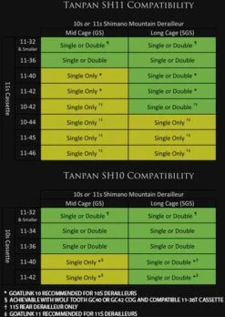 - El Tanpan 11 es compatible con cambios de carretera Shimano de 11 velocidades y optimizado para cambios de montaña Shimano de once velocidades (incluye el nuevo Dura Ace 9100)